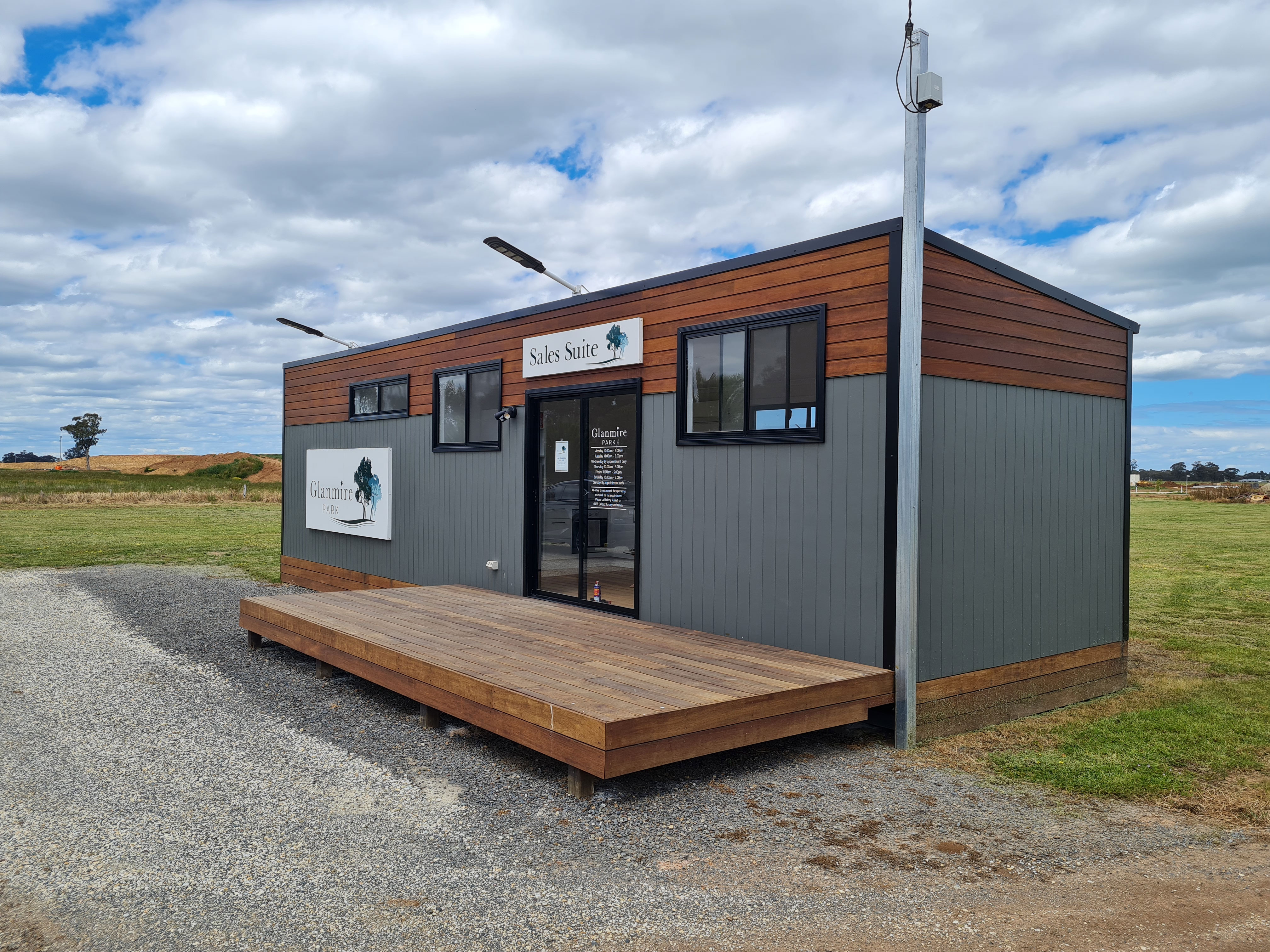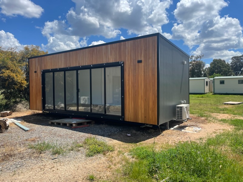 Large flexible open space (3.5 x 8) with multiple power points and air conditioned. 2 sets of triple stacker opening doors open out onto a substantial wide board decking. A secure generator storage cell is located on the end of the module for simplicity of operation.